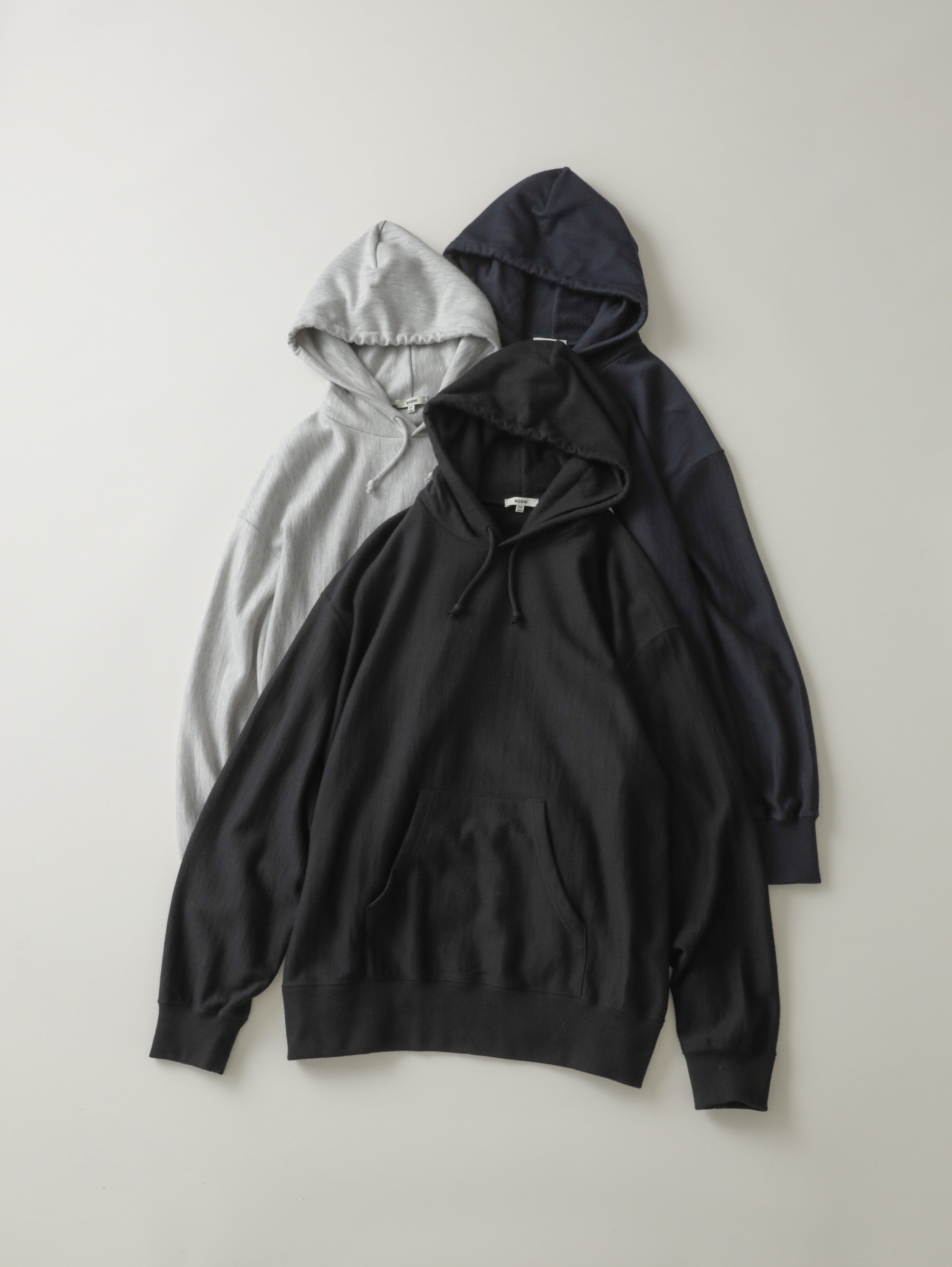 カシミヤ素材のスウェットが必要なのか。BODHIにとってそれはとても必要なものでした。”日常の良質化”。家具や道具など、いいものを大切に使う文化が比較的一般化されているのに対し、衣類はどうも消耗品の要素が強い。ヴィンテージやボロという言葉はおそらく日本で生み出された言葉。一つのものを愛着を持って大切にしていく。そんな手にする人にも心構えを持ってもらえる日常着が作りたかった。モノとして実用的な機能性があり、経年変化を楽しめる深く味わいが出るモノがいい、そう考えたらやはり素材はカシミヤだった。これ以上に妥協のない、究極の日常着。