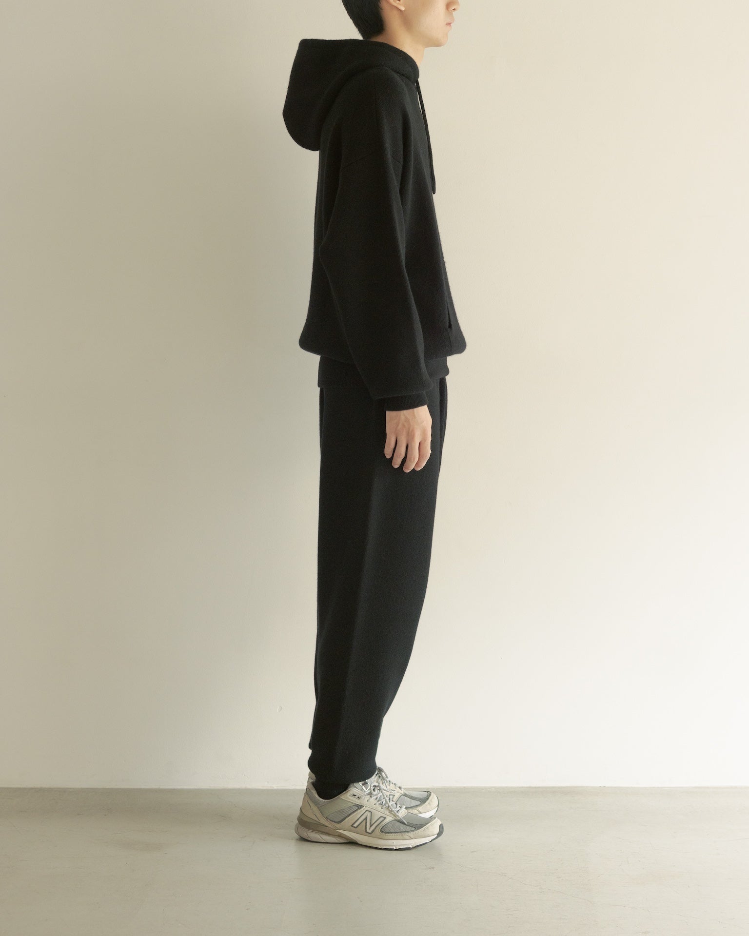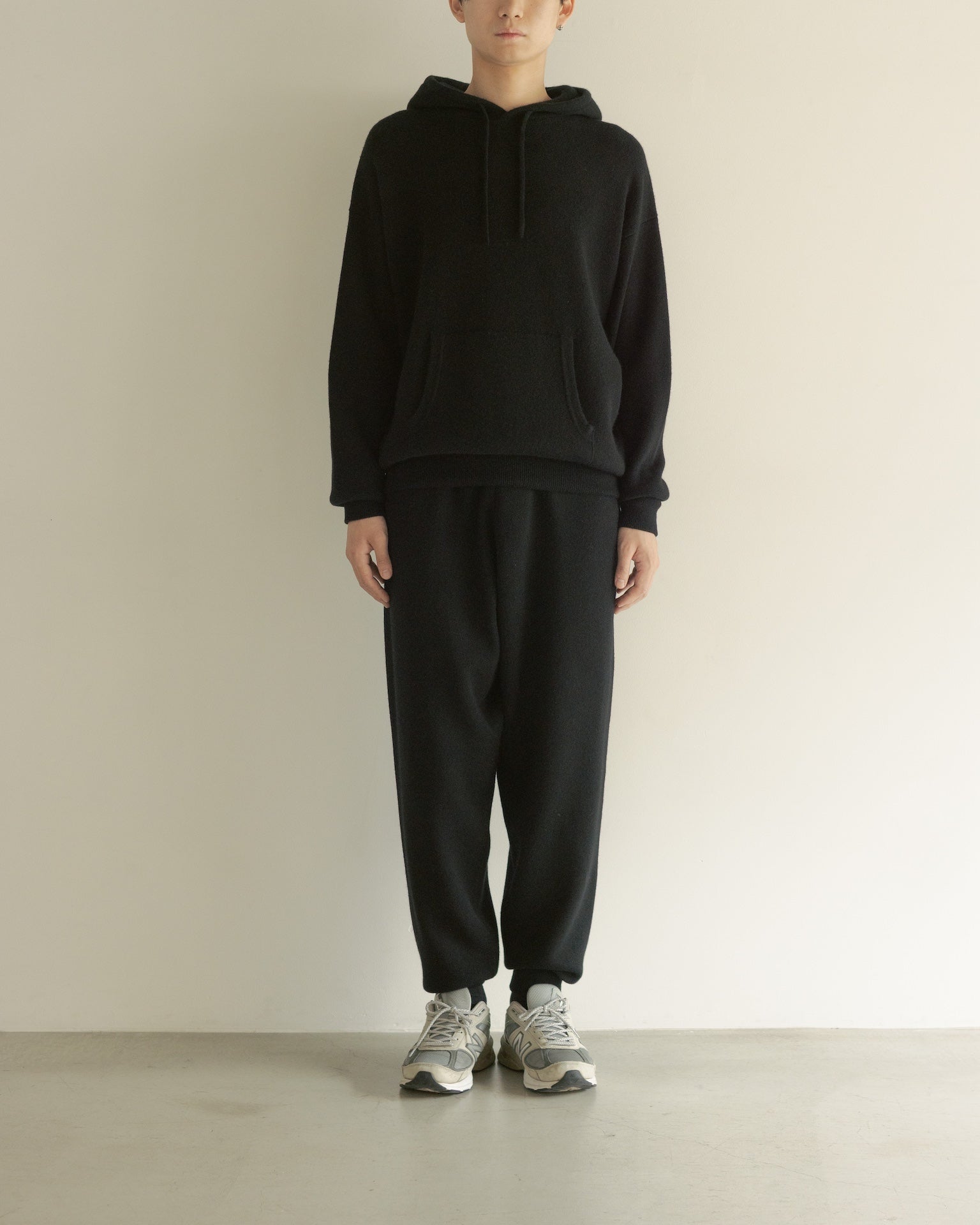 最初にこれが出来た時は大袈裟ですが、今まで見たことのないアイテムが世に生まれたと実感しました。このアイテム、実は製作過程で偶然生まれた一品。ニッティングの利点を活かしながら、ディテールはあくまでスウェットにする事で、ニット以上の強度を保ちながら、スウェットそのものより通気性が増し蒸れにくく、色褪せることもありません。着込むほどに素材の風合いが良くなり、冬になったらこれ一枚で十分。そしてとても軽い。年々分厚いコートを着る事もなくなり、出来るだけ少ないレイヤードで過ごしたい私にとって、日常も旅にも欠かせないアイテムです。ぜひこの素材から始まるBODHIの魅力を感じて下さい。