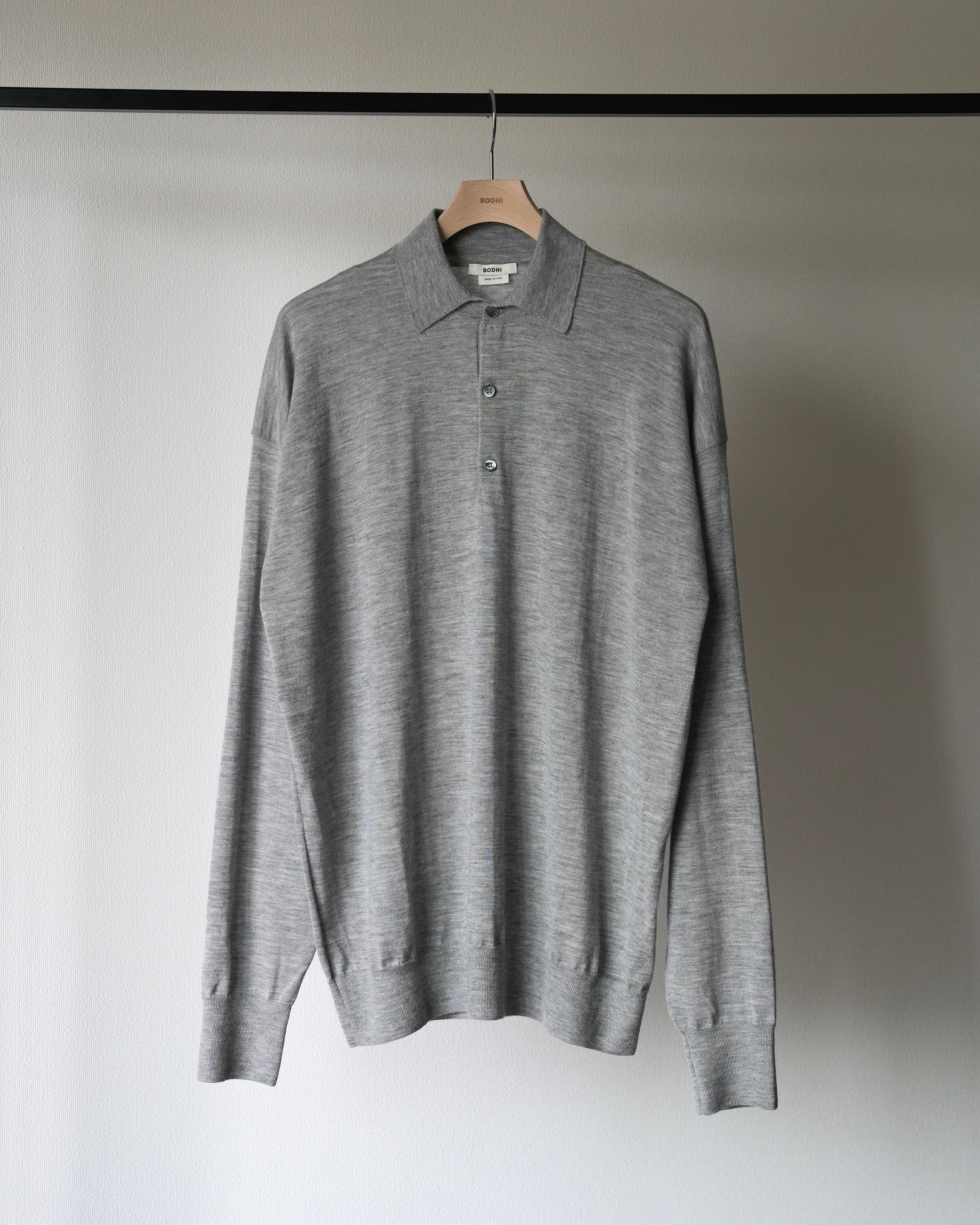 これまでの固定概念を超えた、オールシーズン対応のイタリア製21GGハイゲージニット。製造工程で糸の膨らみを抑え、イタリアの伝統的技術や硬水で仕上げたキメ細やかな質感は、シャリ感を持ち肌離れの良い至高の一品。高品質素材のアレンジとカシミヤ本来の吸湿、消臭、透湿性による機能性を兼ね備えるアイテムです。ハイゲージに多く見られるジャストフィットではなく、BODHI特有のリラックスフィットにより、ドレスとカジュアルスタイルの両面を備えた独自の魅力を生み出しています。