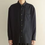 オックスフォード生地のような肉感にブロード生地のようなしなやかさと光沢を求めた、カシミヤ100%の日本製オリジナルファブリック。レギュラーカラーにラウンドヘム、ノータックのダーツにスクエアのポケットとアメリカとヨーロッパをミックスしたデザイン。ウォッシャブル対応可能。