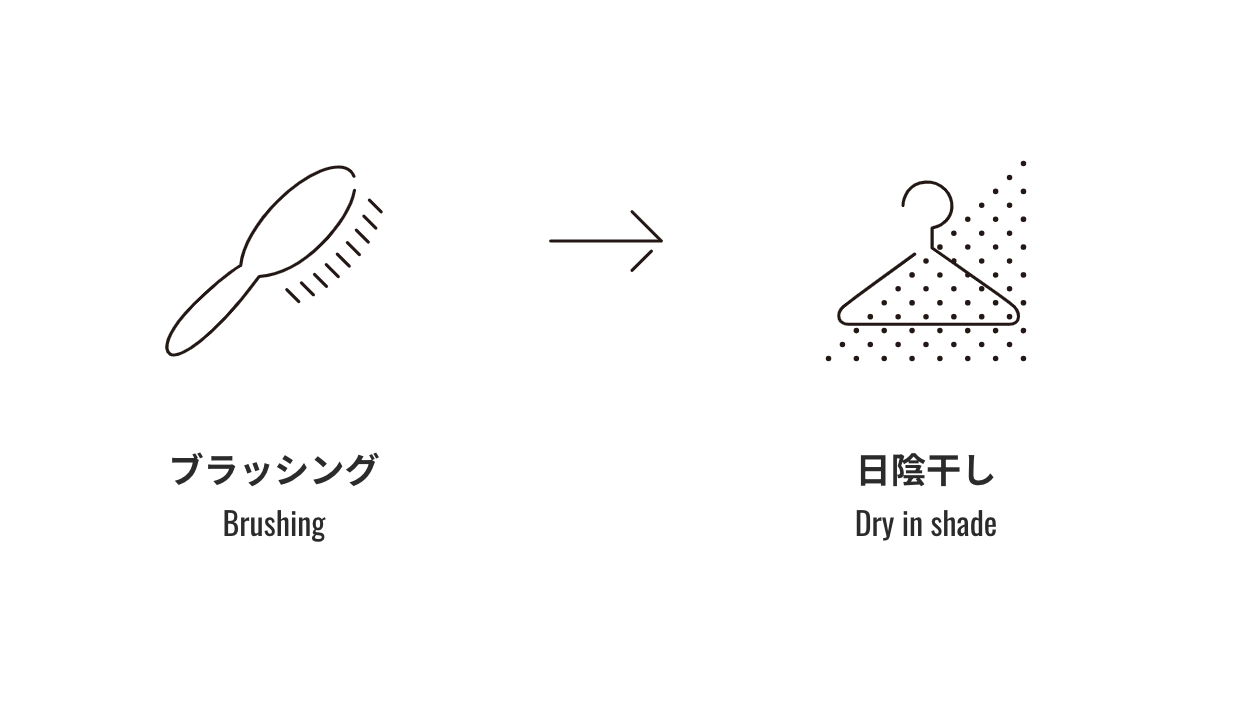 ブラッシング後、日陰で風通しの良いところに平干しにして下さい。カシミヤ本来の性質には、抗菌消臭効果が備わっています。乾燥させる事で繊維に溜まった余分な水分を蒸発していきます。