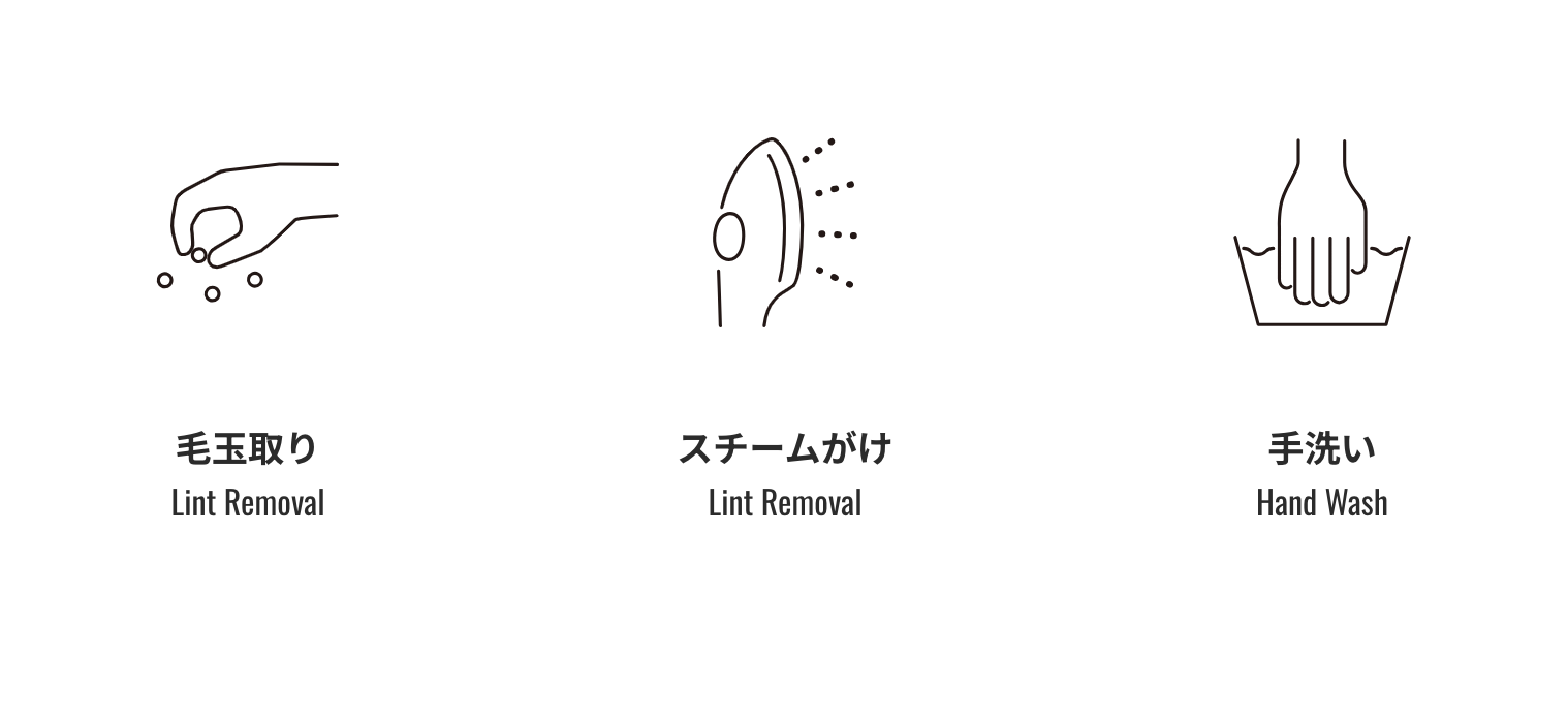 カシミヤの毛は柔らかくとても細い繊維であるため、はじめのうち着用による摩擦や静電気によって短く出た毛足が絡まり毛玉が発生しやすいです。ブラシをかけることで表面上の余分な毛が削がれ、徐々に毛玉が出来にくくなります。もちろん余分な毛を取り除いても、機能性、心地良さは変わりません。