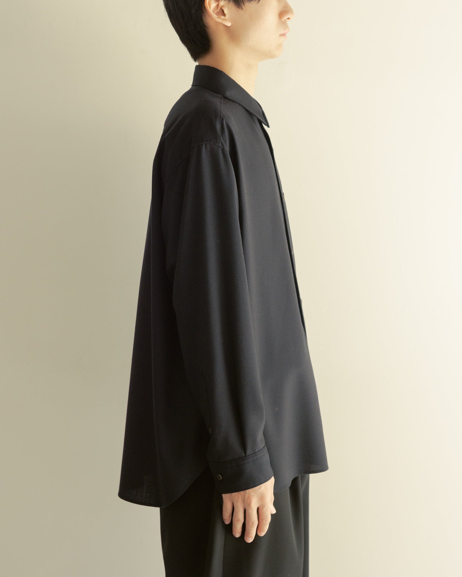 オックスフォード生地のような肉感にブロード生地のようなしなやかさと光沢を求めた、カシミヤ100%の日本製オリジナルファブリック。レギュラーカラーにラウンドヘム、ノータックのダーツにスクエアのポケットとアメリカとヨーロッパをミックスしたデザイン。ウォッシャブル対応可能。