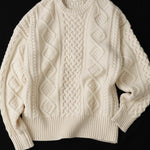 フィッシャーマンズセーターをカシミヤで作った究極のローゲージニット。見た目に相反する軽さと、抜群の暖かさで着る人の快適さを保証します。本来のフィッシャーマンズは漁師が冬の寒さをアウターなしでしのぐためのアイテム。保温性と丈夫さをウールに求めた結果、それはとにかく重いアイテムになっていました。この全ての条件をカシミヤはクリアしています。伝統的なアイテムを良質なカシミヤでアップデートしたセーターです。