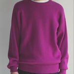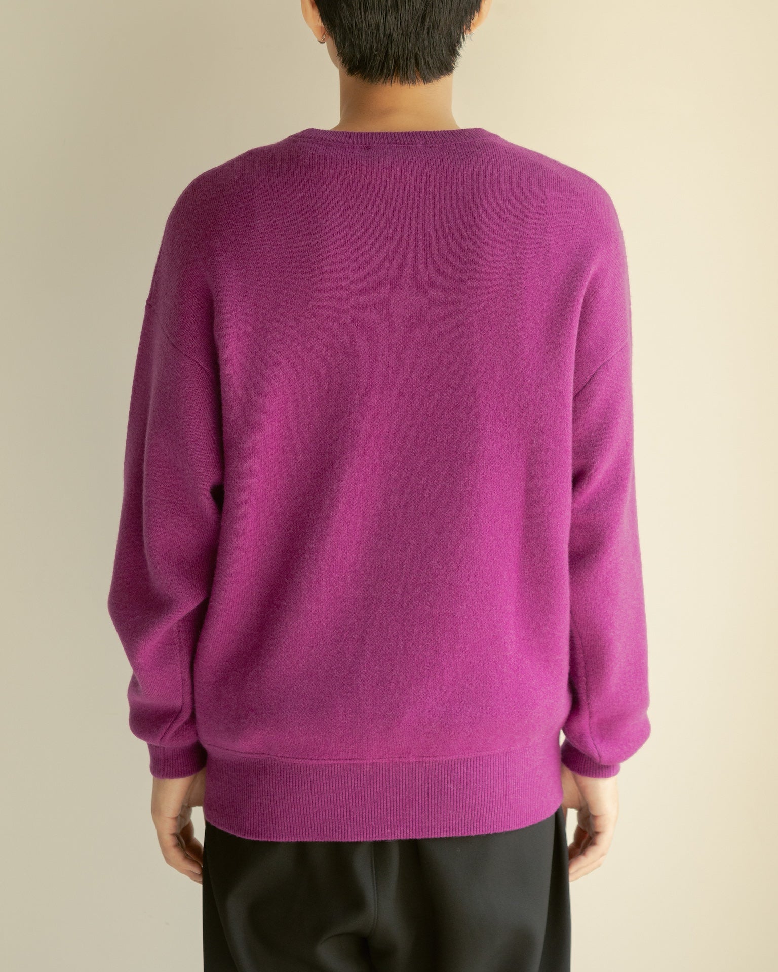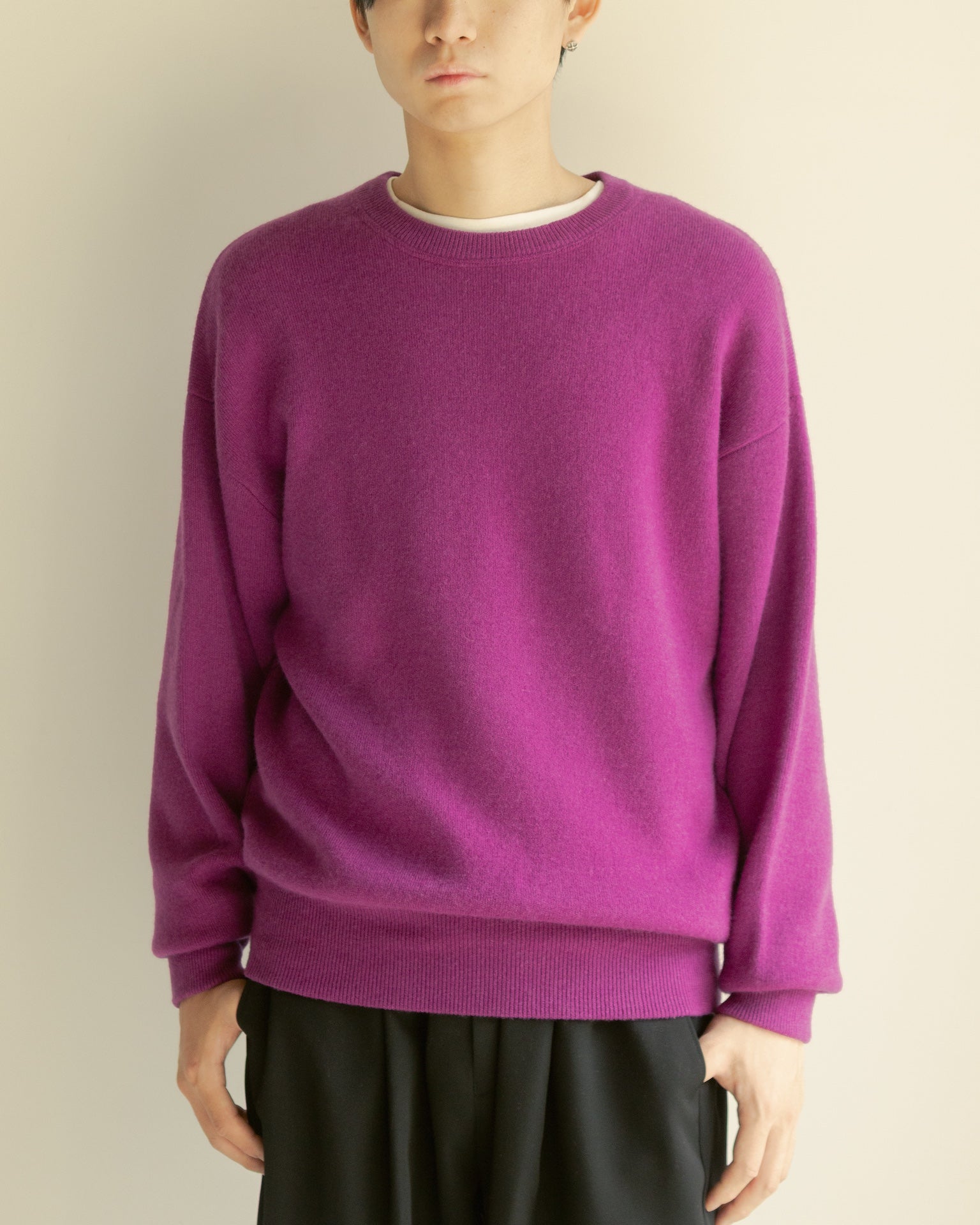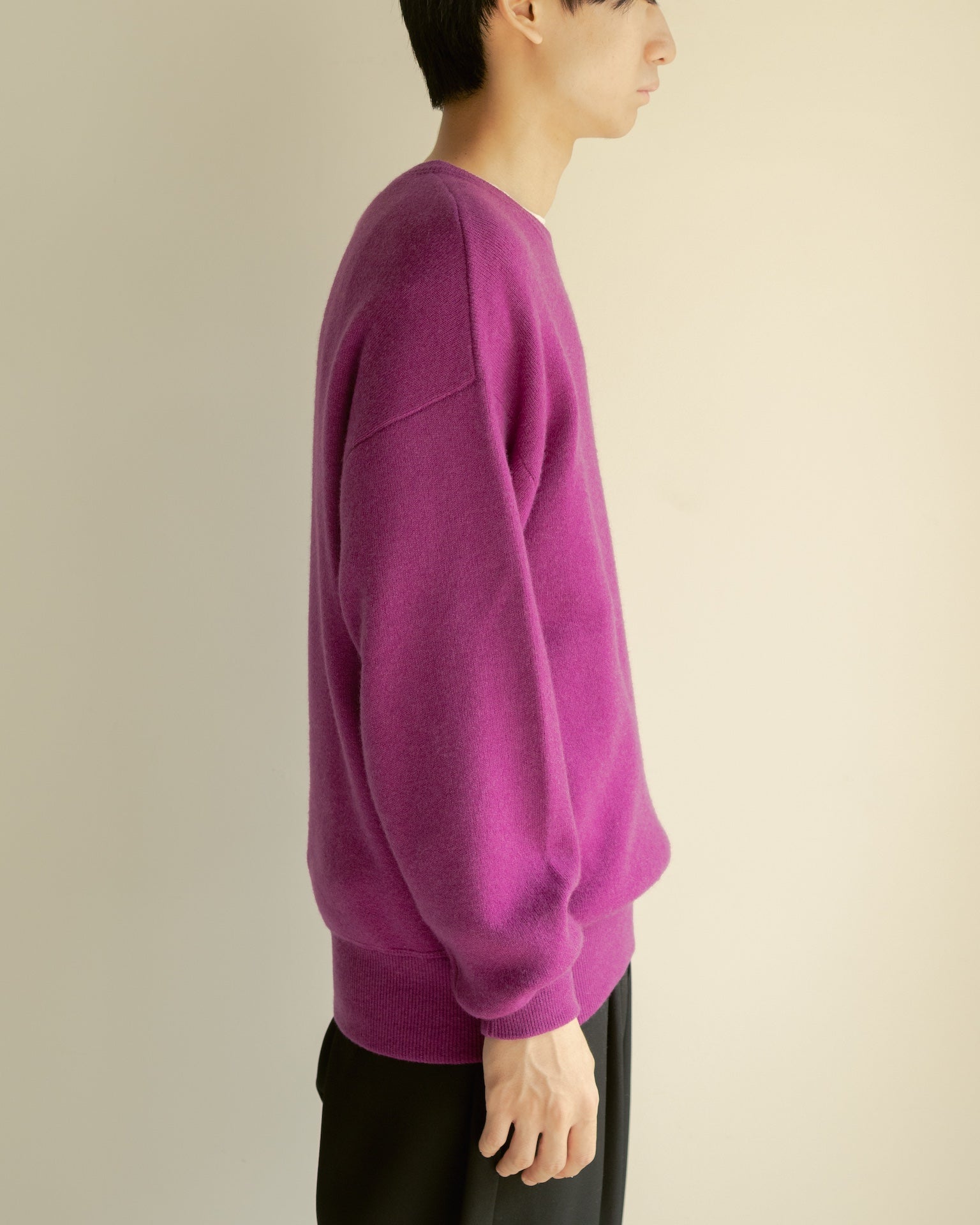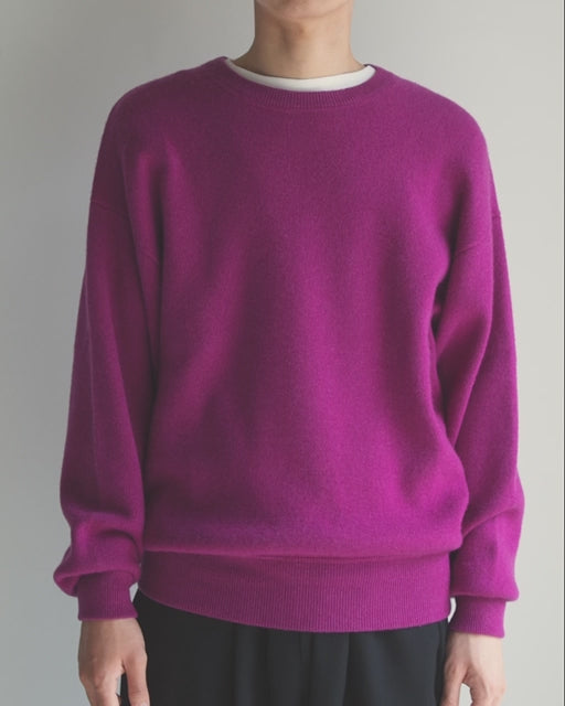 100%カシミヤのヘビーウェイトニットスウェット。極細のカシミヤ毛を束ねて詰めることで肉厚で耐久性に優れ、加えてとても軽く仕上がっています。カシミヤ本来の性質である吸湿性が身体の余分な水分を吸う為、体温調整し蒸れを防ぐ天然の機能性を発揮。室内外において、常温を保ち不快感なく着続けることが出来ます。このアイテムはヴィンテージのスウェットをデザインベースに、袖と裾のリブを少し長めに設定し、防風のためリブテンションを強めに調整。どの時代にも対応するスタンダードなボックスシルエットです。