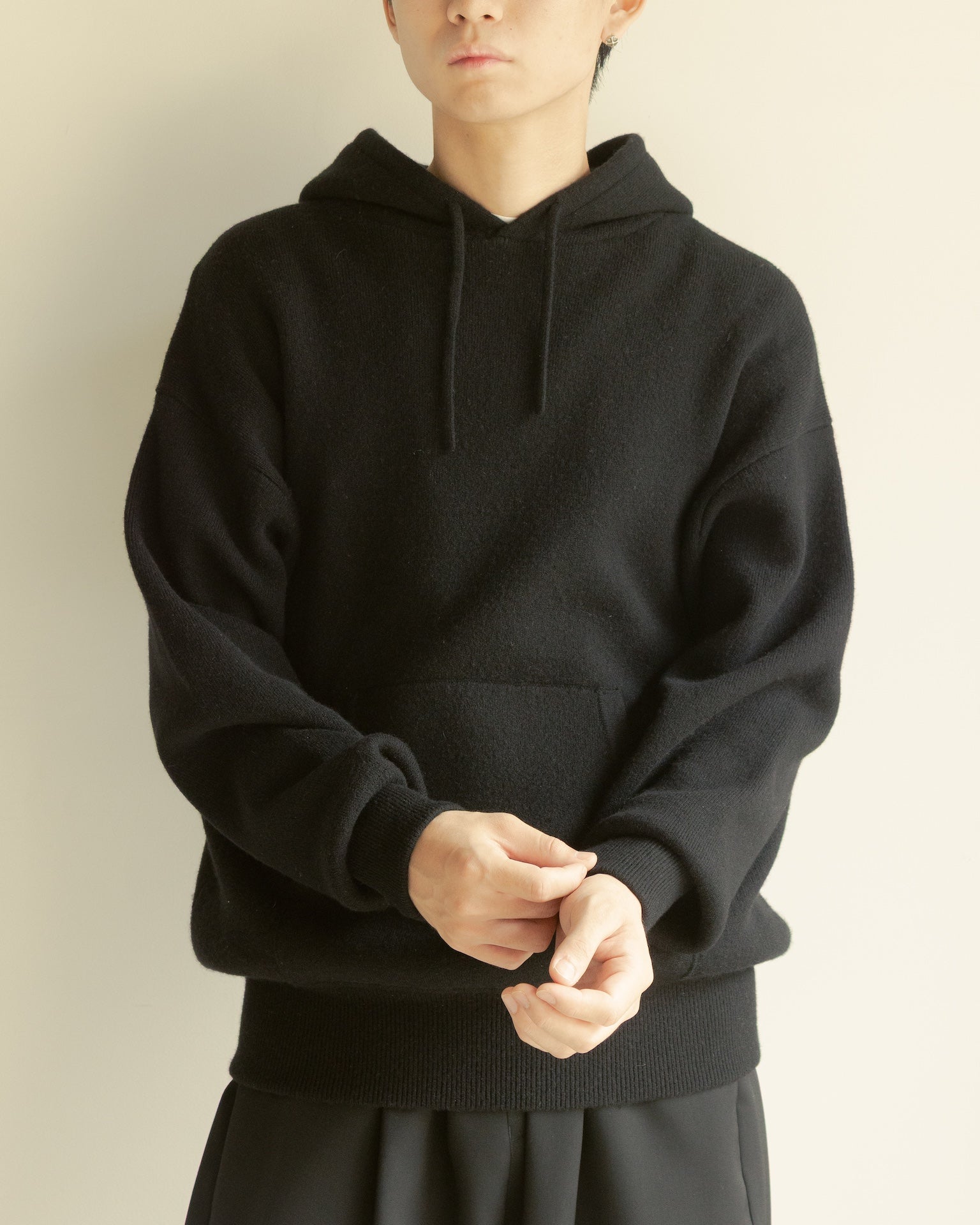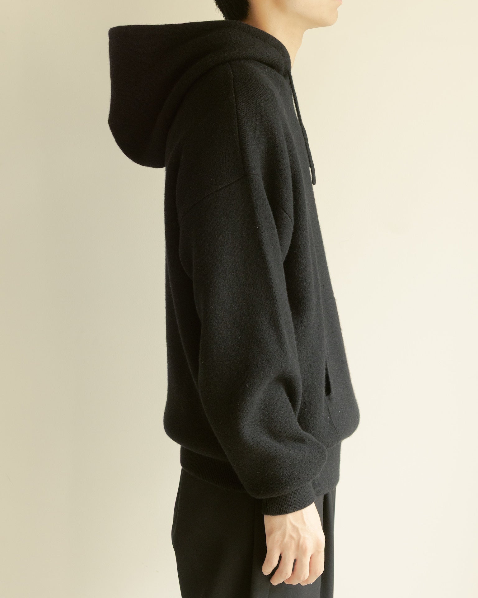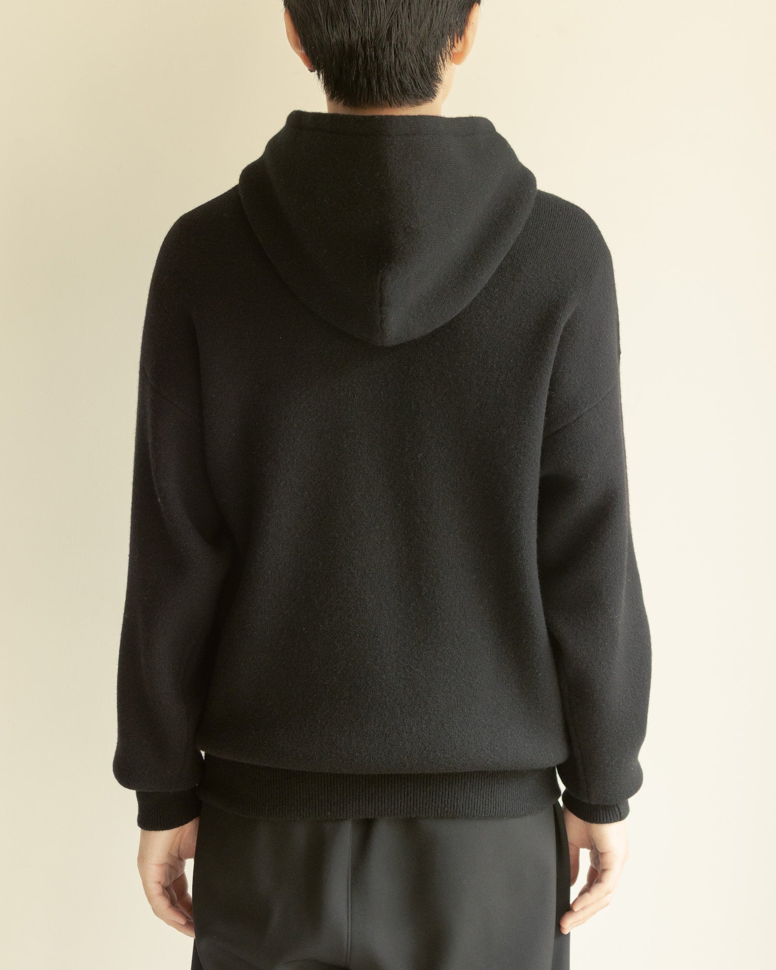 100%カシミヤのヘビーウェイトニットスウェット。極細のカシミヤ毛を束ねて詰めることで肉厚で耐久性に優れ、加えてとても軽く仕上がっています。カシミヤ本来の性質である吸湿性が身体の余分な水分を吸う為、体温調整し蒸れを防ぐ天然の機能性を発揮。室内外において、常温を保ち不快感なく着続けることが出来ます。このアイテムはヴィンテージのスウェットをデザインベースに、袖と裾のリブを少し長めに設定し、防風のためリブテンションを強めに調整。どの時代にも対応するスタンダードなボックスシルエットです。