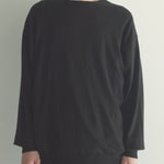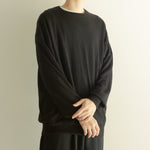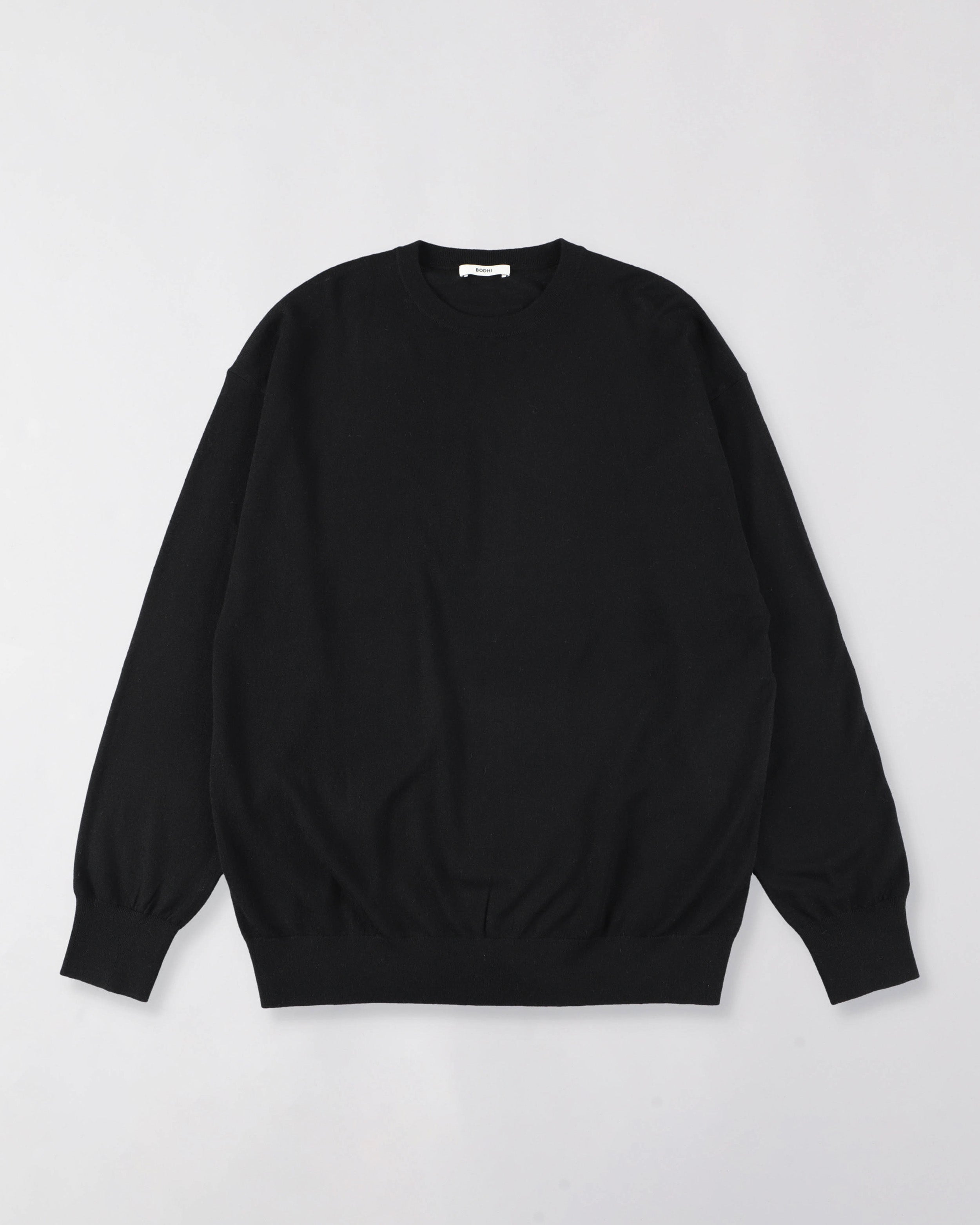 オールシーズン着用可能なカシミヤのハイゲージ天竺ニットソー。極細毛のカシミヤを通常よりもさらに強然することで保温する空気のポケットをカットし、サラッとした肌触りと着ていないような軽さを実現。ボディにフィットしやすい組織のため、身体のラインが出にくいようなリラックスシルエットを製作し取り入れています。袖はあえてロンT感覚で着用するような長めの設計。リブなどの折り曲げてもスタイルになるデザインを施しています。