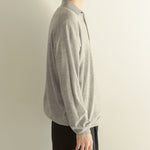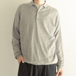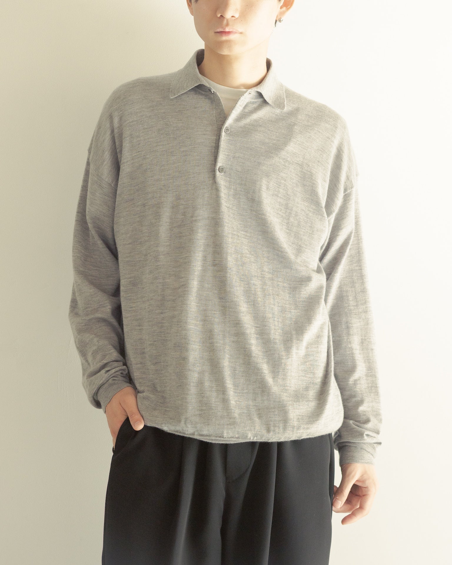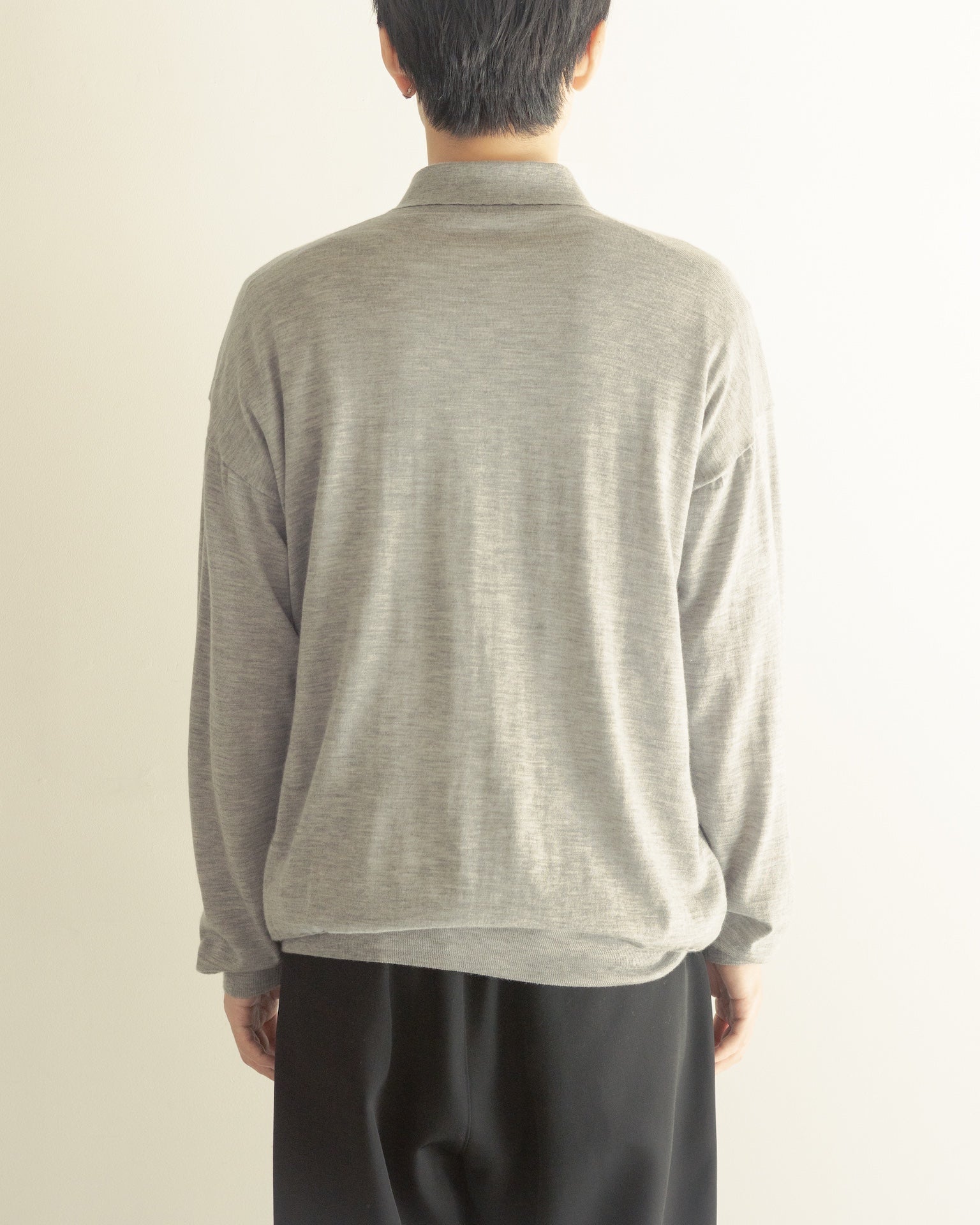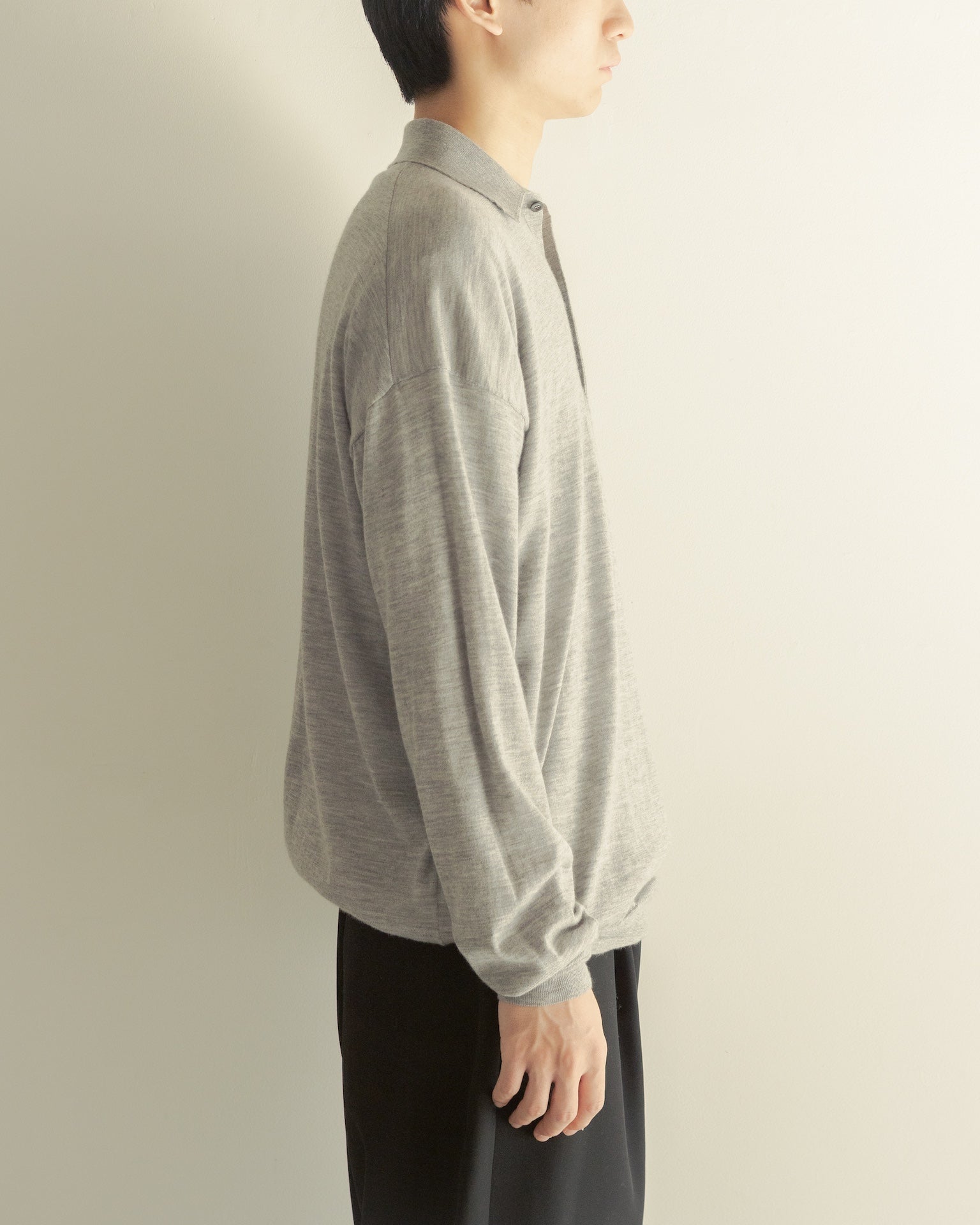 ヨーロッパでは通年着るアイテムとして、ジャージの代わりにハイゲージのニットを愛用する方も多く、特にイタリアはニットの産地である為ゲージの種類も豊富です。今回はニットのディテールの良さを残しつつ、通年愛用できる21GGで製作。糸は日本のカシミヤ梳毛糸を使用。イタリアの硬水で洗ったカシミヤは、含有ミネラルが製品の表面を程よく削ってくれるため、毛羽が取れ起毛がほとんどありません。コットンで例えるなら、スビンやギザ辺りの質感を獣毛で産み出せます。いい意味でカシミヤではないような、麻のようにシャリっとした新しい質感。ジャージアイテムは変わらず好きですが、少し落ち着いた雰囲気の、さらっと一枚でオールシーズン対応可能なカシミヤハイゲージは、生活の質を向上してくれる良きパートナーです。
